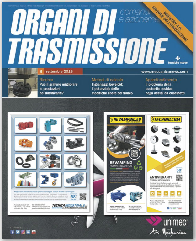 A partire da settembre 2018, Tecnica Industriale sponsorizza tre pagine della prestigiosa rivista mensile Organi di Trasmissione.