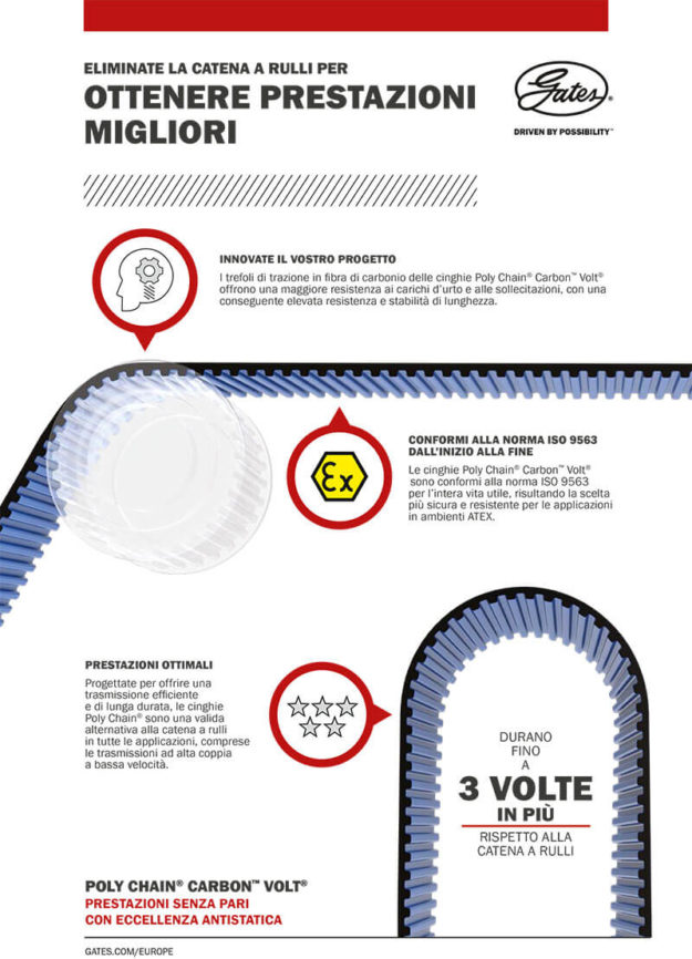 Progettate per offrire una trasmissione efficiente e di lunga durata, le cinghie Poly Chain sono una valida alternativa alla catena a rulli in tutte le applicazioni, comprese le trasmissioni ad alta coppia a bassa velocità.